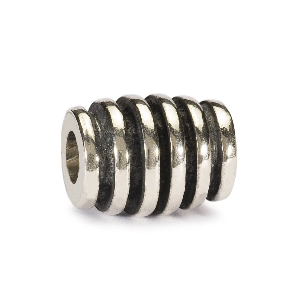 The beautifully somple and grooved bead looks good next to more organic patterns.